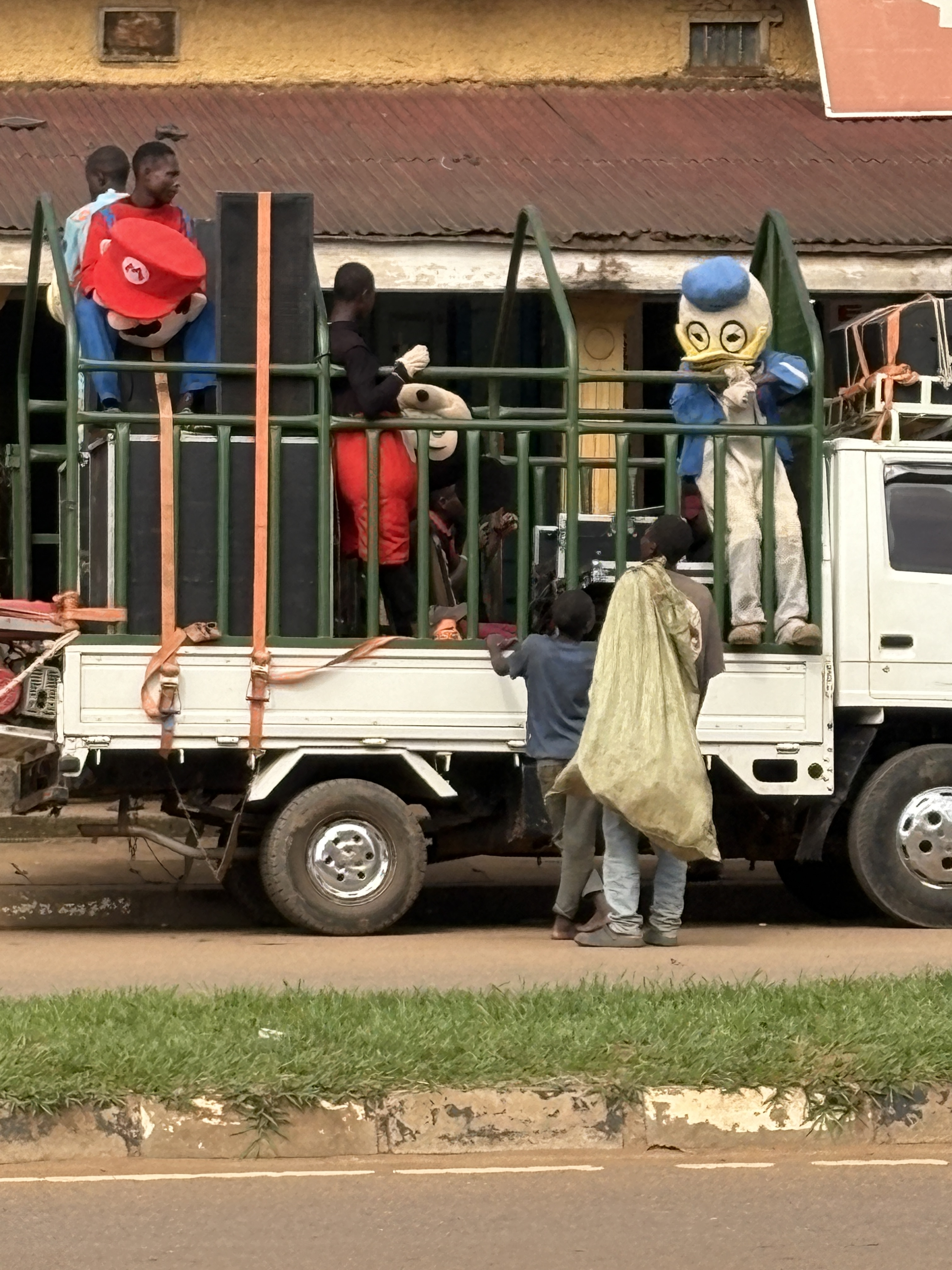 Then there’s the random things we see… a camel walking down the street. Why? I have no idea. A few guys in the back of a truck with loudspeakers, dressed in random costumes of Mario, Donald Duck and Spiderman. Tiny trucks carrying too large items or overloaded vehicles, giant termite mounds, cattle traffic jams, a regular grocery store called Walmart, funny product names, crazy-looking bugs, interesting signs, and of course all the Boda Fun.